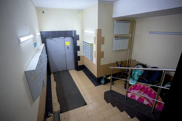 Подъезд чистый просторный с местами для хранения колясок и велосипедов